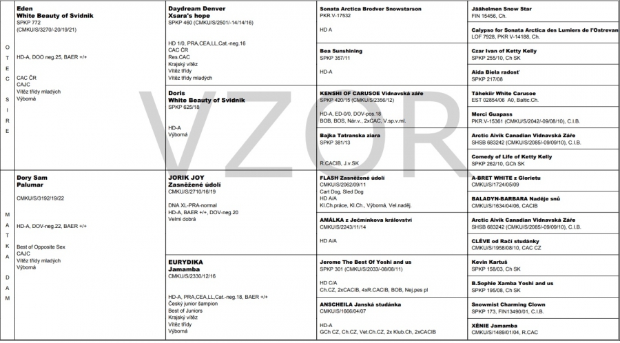 | HANIKA SAM | fena | bílá | ZADANÁ |